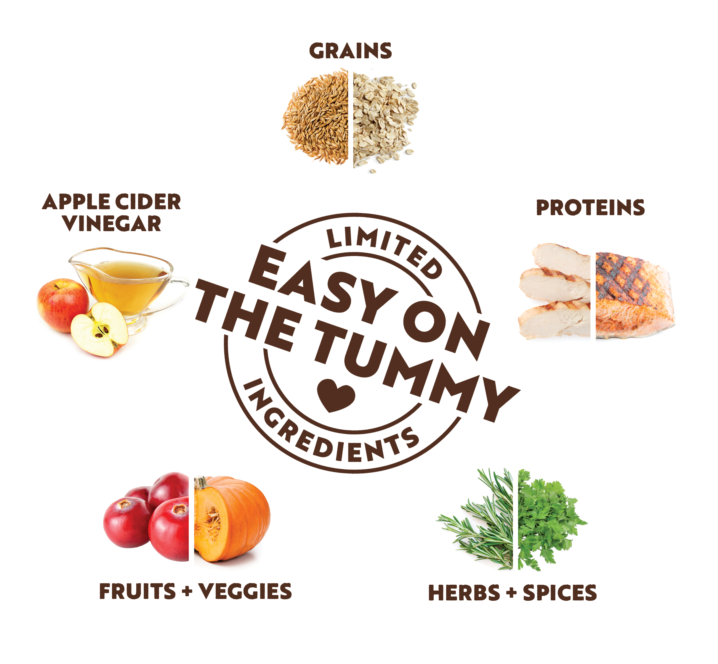 No Wheat. No Artificial ingredients. No tummy problems.